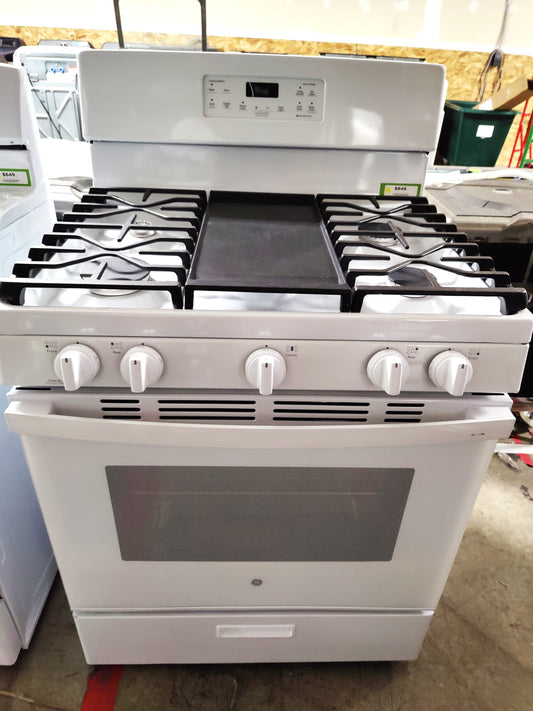 GE 30" Free-Standing Gas Range 5-Burner, Continuous Grates w/ Griddle (White)